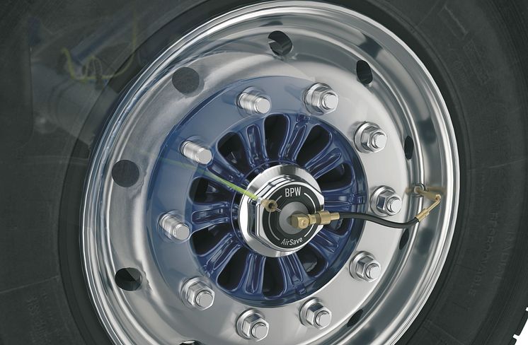 The system uses the existing trailer pneumatics and, with a fully automatic booster pump, ensures that the preset tyre pressure is maintained at all times. The air is guided through the axle beam to the wheel end and from there to the tyre valve.