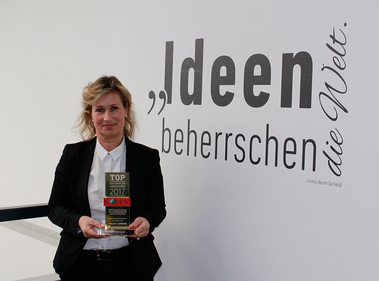 Barbara Höfel, Member of the Executive Board, HR at BPW, is pleased to receive the award from the news magazine FOCUS.