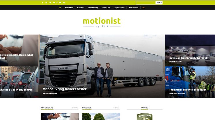 With motionist.com, BPW is heavily focusing on digitialistion, networking - and dialogue. The online portal, which includes topical reports, podcasts, interviews and fascinating images from the world of transport and logistics, is connected to BPW's social media channels. One year ago, motionist.com successfully replaced its printed BPW customer magazine and has since recorded more than 5,000 visits per month.