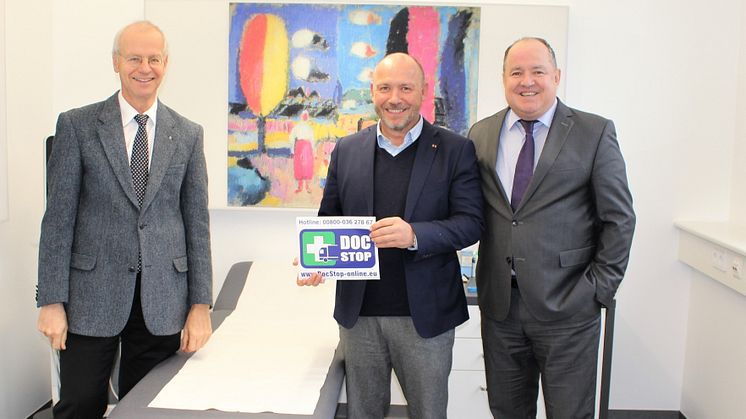 Wiehl, 3 March 2020 --- Dr Gunnar Heymer, works doctor for BPW Bergische Achsen KG at the company headquarters in Wiehl, will now also treat truck drivers who fall ill on the road. BPW is a member of the DocStop initiative, which provides truck drivers with medical treatment while on the road if they call the Europe-wide hotline on 00800 03627867. DocStop Chairman Joachim Fehrenkötter and BPW Managing Director Michael Pfeiffer are also calling on other companies to do more to ensure the well-being of truck drivers.