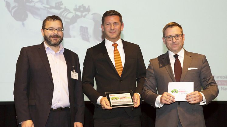 Wiehl, 1.12.2017 --- eTransport, the electric axle drive developed by BPW, is thought to have won more innovation prizes this year than any other concept in its category. BPW has now added the European Transport Prize for Sustainability to its trophy cabinet. The company ranks among the heavyweights in the true sense of the word, not only in view of its multiple awards. Unlike most of the concepts considered by the jury, BPW is targeting HGVs with payloads in the range from 5.5 to 26 tonnes.